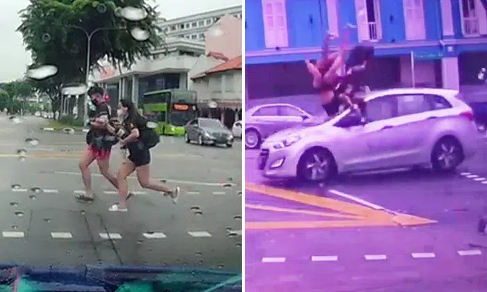 A pair of teenagers were flung across the road after being hit by a taxi at the junction of Paya Lebar Road and Geylang Road on Thursday afternoon (Oct 1).