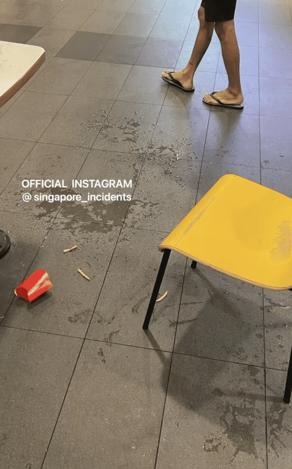 Charlie Tan, who shared the clip, also shared: "First, one of them bought ice cream then slapped it on his own face, throwing the remaining on the floor, creating a mess (photo as attached)."