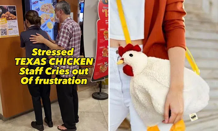 An employee of a Texas Chicken outlet at Century Square was reduced to tears after having to contend with angry customers who were told there were no more free chicken-shaped bags left.
