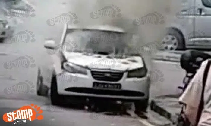 Thick plumes of smoke were seen billowing from a car in Woodlands Drive 16 at 2.45pm yesterday (April 29).