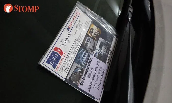 Stomper Eve was impressed when she found a flyer tucked under her car's windscreen wipers and enclosed in a ziplock bag at her home carpark in Yishun on Thursday (Oct 11).