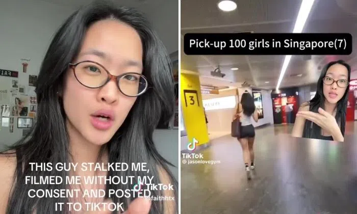 In a now-deleted TikTok video titled "Pick-up 100 girls in Singapore (7)," a man can be seen approaching Ms Teo and asking her if she goes to the gym.