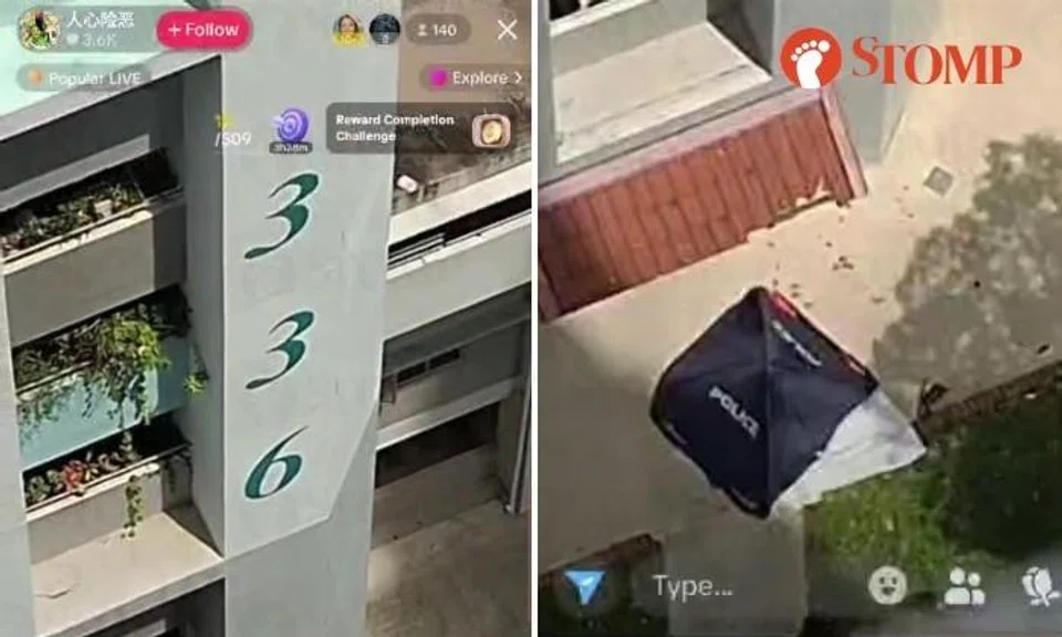 A TikToker live-streamed a police tent at the foot of Block 336 Ang Mo Kio Avenue 1 where a man was found dead on June 27.