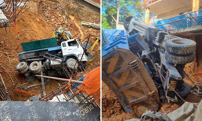 A parked tipper truck at a construction site in Astrid Hill rolled backwards and fell from the ground level to the basement level, with an excavator operator who was near the fallen vehicle sustaining abrasions on his legs.