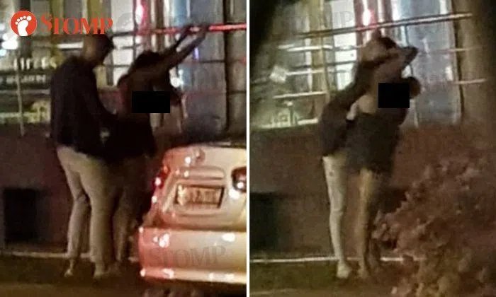 Stomper Zai, who submitted photos and videos to Stomp, had just dropped off a passenger and was waiting to pick up someone else when he saw the couple at around 12.30am .