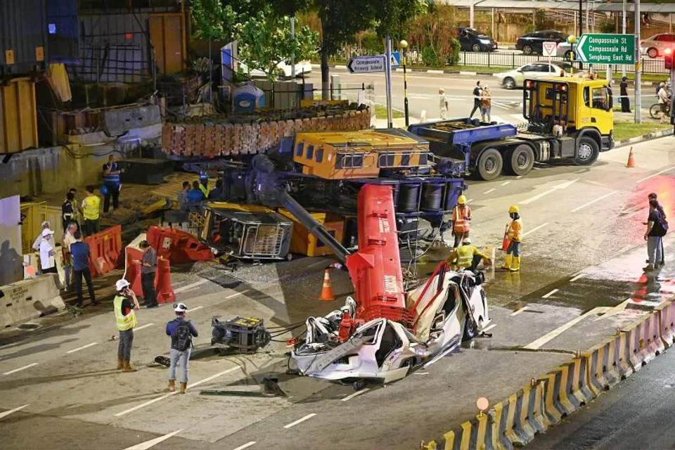 The van driver, 28, jumped out of his vehicle just in time before the crane fell on it, reported The Straits Times. He was conscious when taken to Sengkang General Hospital.