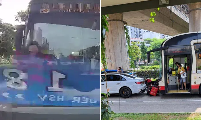 In response to a Stomp query, a Tower Transit Singapore (TTS) spokesperson said: "The bus rear-ended a motorcycle which had stopped at the red light causing the motorcycle to collide with the car in front of it.