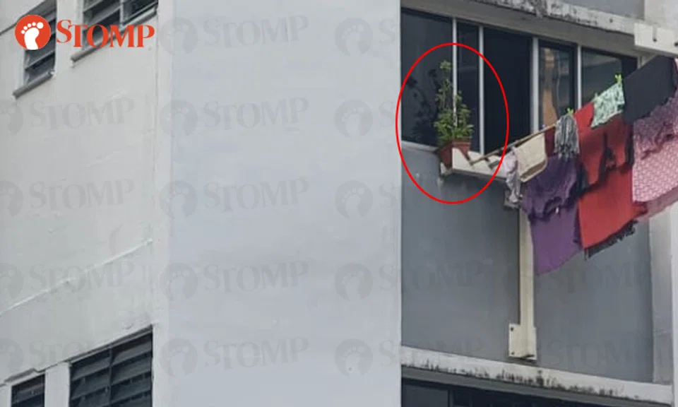 This comes after Stomper A reported seeing a potted plant on a laundry rack at Block 525 Bedok North Street 3 on Feb 18, at around 6.15pm.