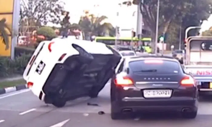 Toyota car flips after colliding into Porsche changing lanes at Ubi: Who is at fault?