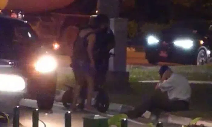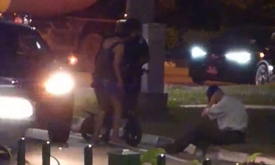 A driver was seen sitting on the side of a road in pain after he was allegedly punched by a personal mobility device (PMD) rider at the Woodlands Avenue 2 exit from the Seletar Expressway (SLE) on Friday evening (Aug 2).
