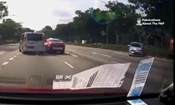 A Toyota Prius spun out of control following a collision with a red TransCab at 10.30am on Aug 20 along the Pan-Island Expressway (PIE) going towards Stevens Road, after its attempt to cut in front of the taxi.