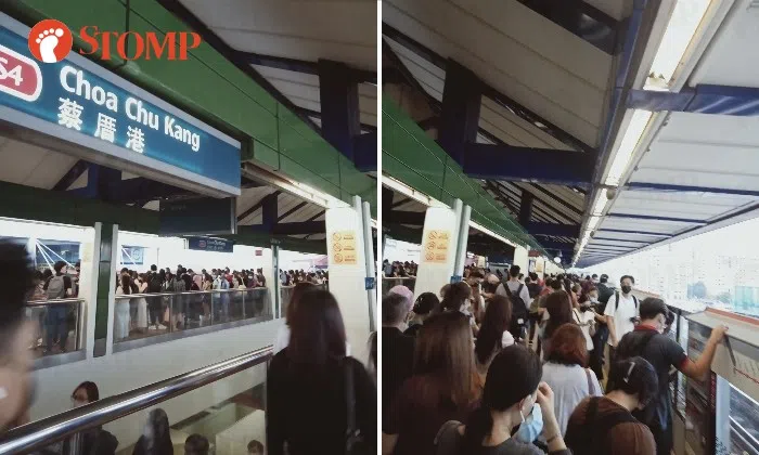Sharing photos of Choa Chu Kang station, Stomper Zen said: "Upon arriving at the station at 7:50am, I looked at the time board and was wondering how come the train timing was so long. Once I reached the platform, there was a massive crowd waiting for the next train. Everyone was gonna be late for work."