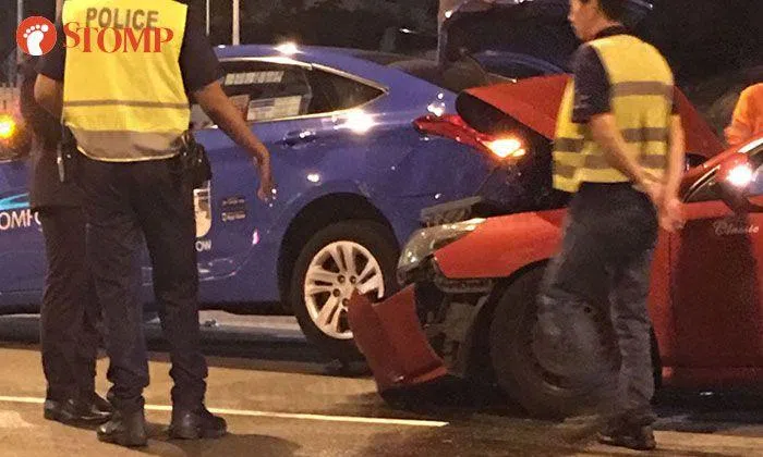 A TransCab taxi crashed into the rear of a ComfortDelGro taxi yesterday (Sept 10) at around 11.48pm along Airport Boulevard.