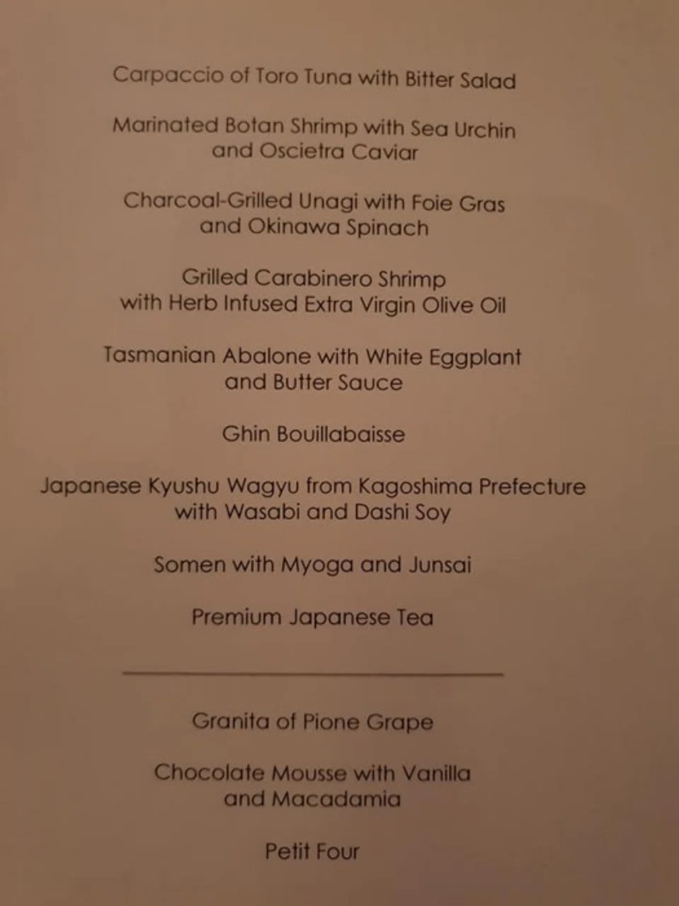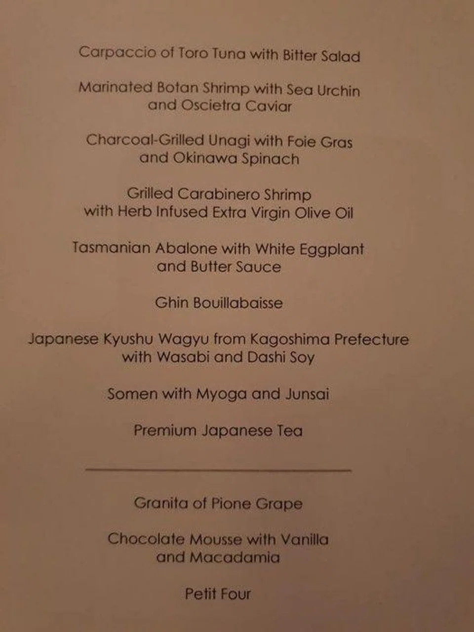 The Omakase, a type of meal where dishes are selected by the chef, cost $450 per pax and consisted of various courses including Japanese tea and dessert.