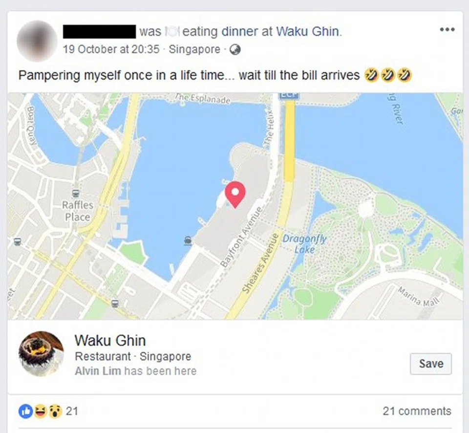 The woman shared photos of her food and receipt on Facebook after her visit to Waku Ghin, which has two Michelin stars and is helmed by celebrity chef Tetsuya Wakuda.