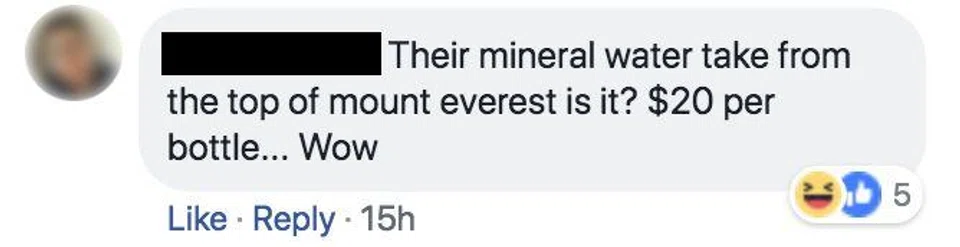 Netizens were stunned at how mineral water at the restaurant cost $20 per person and did not hesitate to be vocal about it.