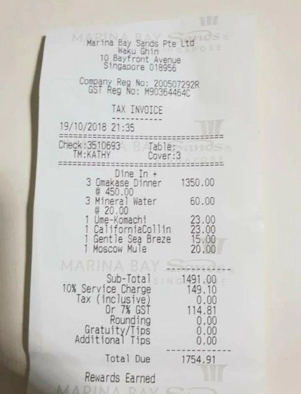 A woman and two friends enjoyed a $1,754.91 meal at a Japanese restaurant in Marina Bay Sands on Oct 19, but what really got netizens talking was the cost of the trio's mineral water.
