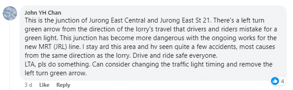 While many netizens left comments slamming the truck driver, one netizen noted that the area is particularly accident-prone.