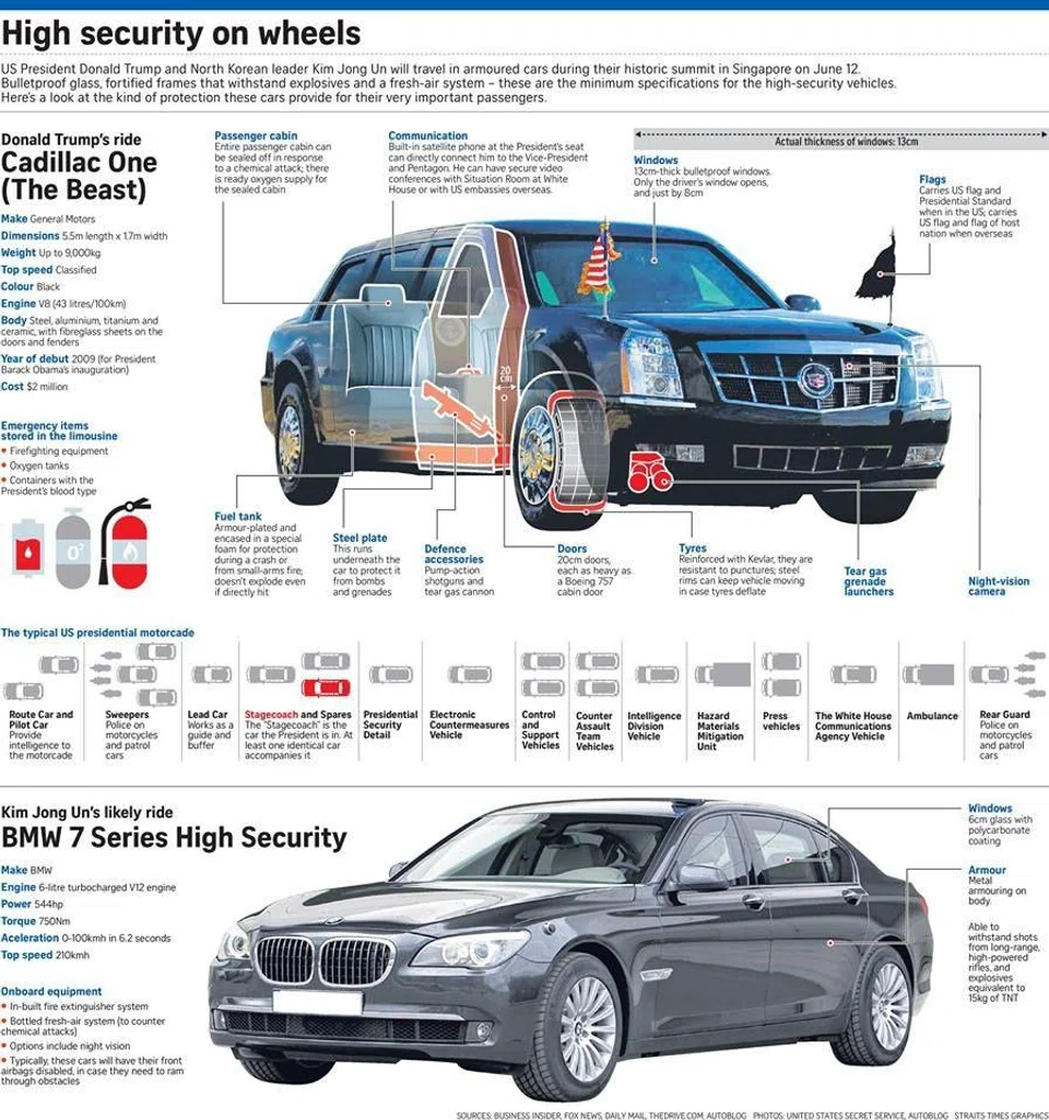The fleet also consists of at least one identical car for emergency and decoy purposes.