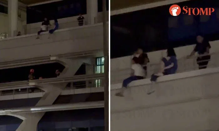 Two teenagers, aged 14 and 16, were apprehended after they were spotted sitting on the ledge of a parapet at KK Women's and Children's Hospital on May 13.