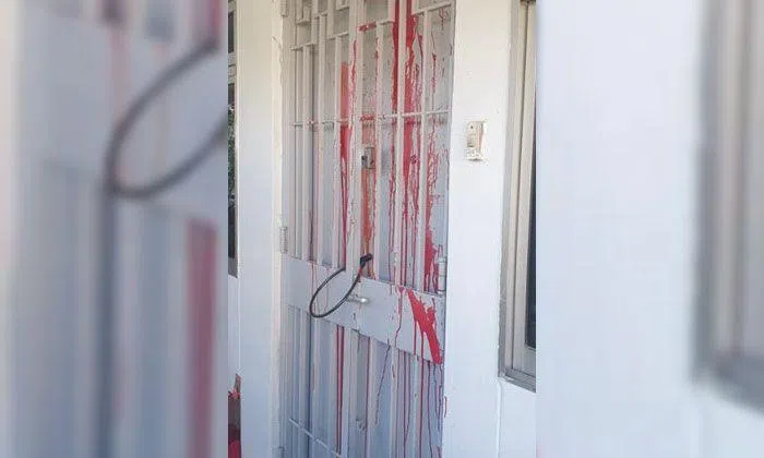 Two teens arrested after locking CCK unit's gate with bicycle lock and splashing it with red paint