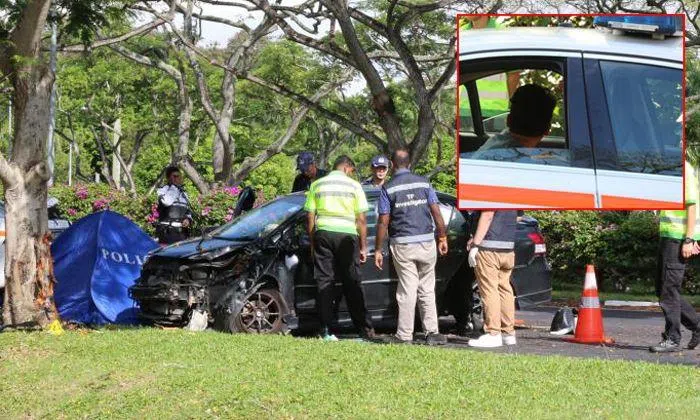 The fatal accident occurred on July 9, 2017, on the slip road into East Coast Parkway, towards Marina Coastal Expressway, when the Toyota Vios skidded and crashed into a tree.