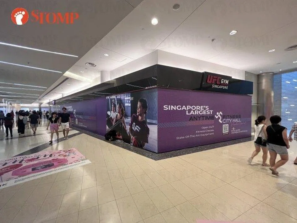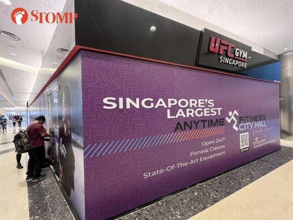 When Stomp visited the UFC Gym in CityLink Mall on Saturday (May 6), the unit was boarded up with hoarding that said: "Singapore's largest Anytime Fitness City Hall presales now on!"
