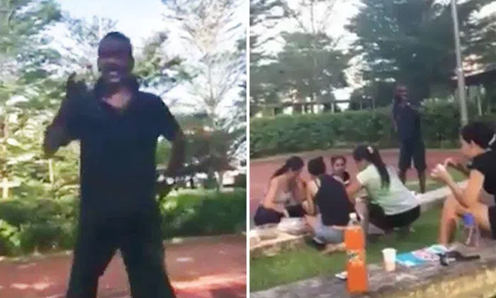 An man was caught on camera hurling vulgarities and using derogatory language on a group of women who were having a picnic.