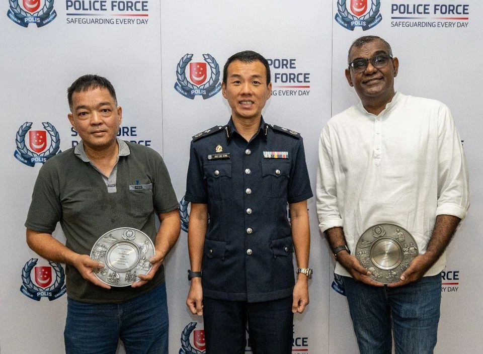 On Aug 7, Mr Tan and Mr Jayaretnam were presented with the Public Spiritedness Award by Woodlands Police Division.