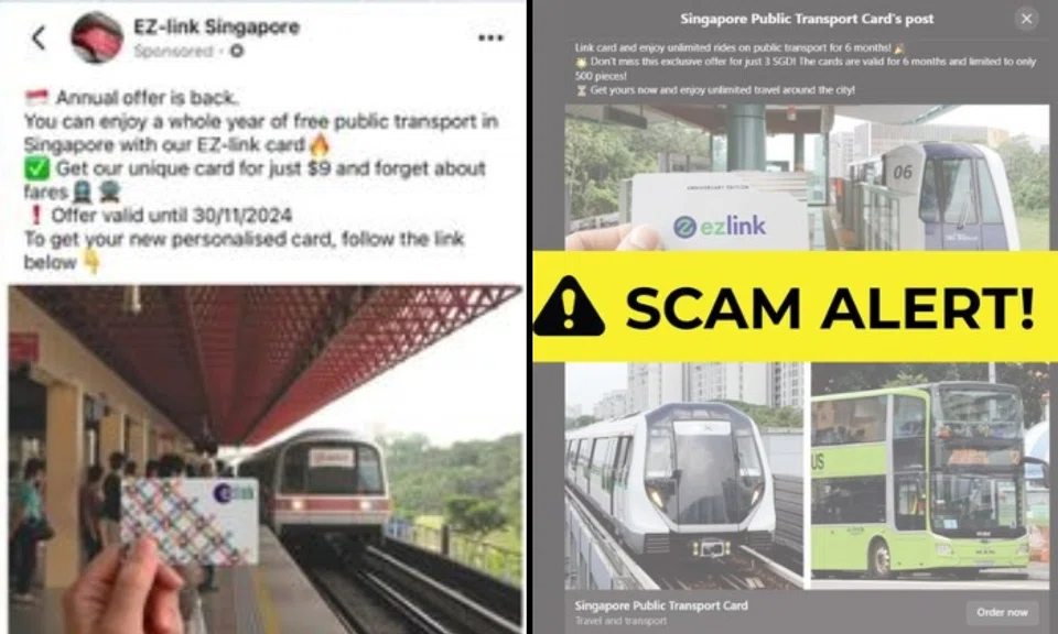 "These scams feature sales of ez-Link cards with attractive deals, such as unlimited public transportation for a small fee. When users click on the ad links, they're directed to phishing websites that request bank details and OTPs (one-time passwords).