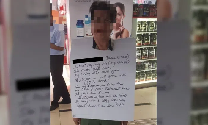 UOB responds to photo of man wearing poster about his savings allegedly 'gone with the wind'