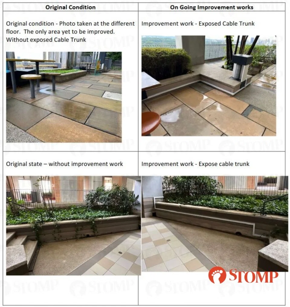 In response to a Stomp query, a spokesperson for the Tanjong Pagar Town Council said: "As part of our cyclical maintenance regime, we have recommended partial rewiring works to enhance the safety and efficiency of our electrical systems. This includes exposing electrical trunking in certain areas of the estate.