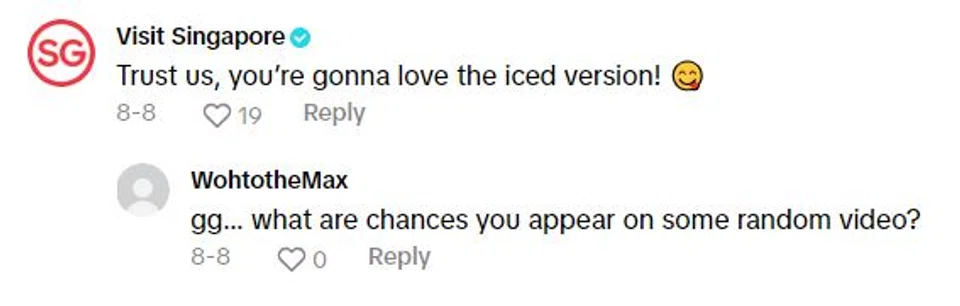 Even the Singapore Tourism Board chimed in via its TikTok account Visit Singapore: "Trust us, you're gonna love the iced version!"
