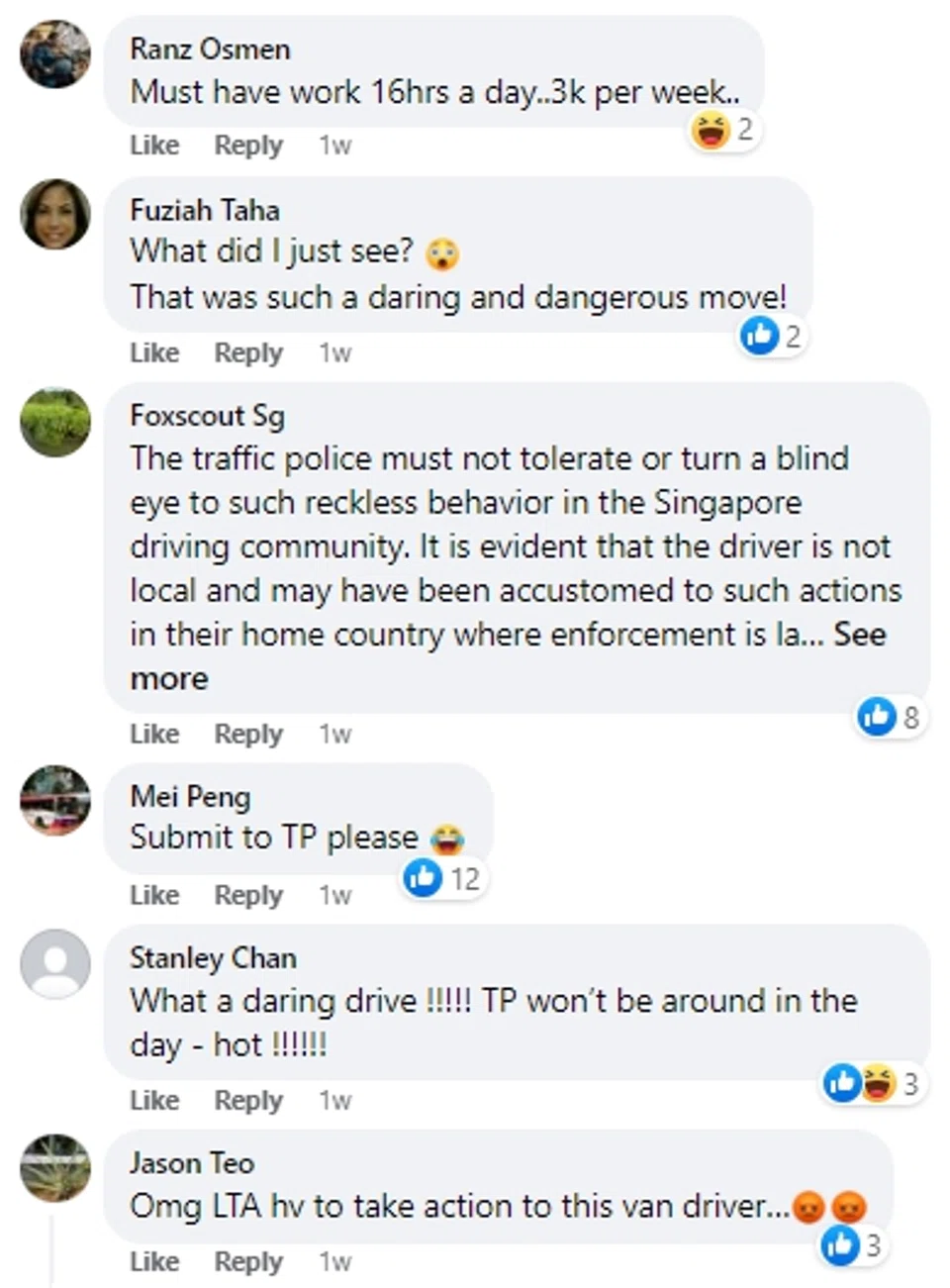 In the comments, several netizens urged the contributor to report the incident to the Traffic Police (TP).