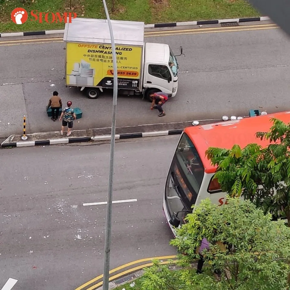 The Stomper recounted: "A truck was driving along Jurong West Central 3 when some of its load crashed onto the road, creating a mess of bowls and broken pieces.