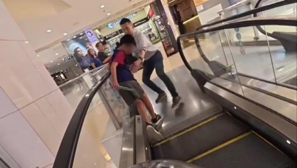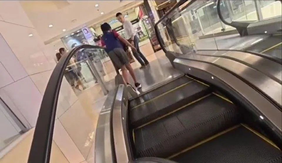 Stomper Saimarn alerted Stomp to the video he posted online on Feb 24 with the subtitle "Be careful on the escalator with children."