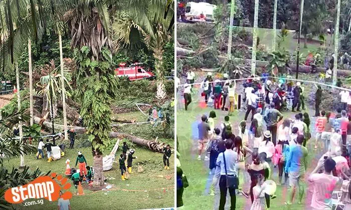 The SCDF said in a Facebook post that it was alerted to an incident of a fallen tree at the Singapore Botanic Gardens with persons injured at approximately 4.25pm today.