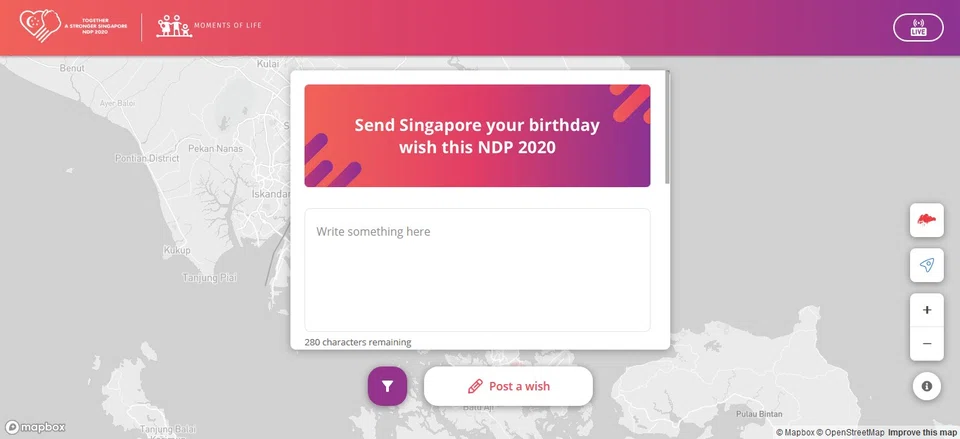 You may also post your birthday wish for Singapore, which can be seen by all users on the map.