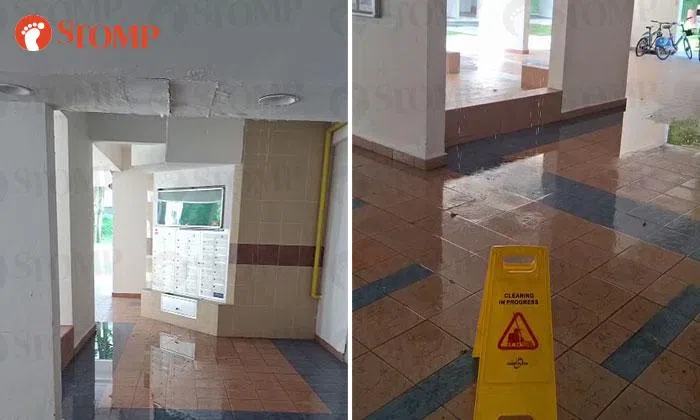 ‘Waterfall’ from ceiling that 'looks like cardboard' at Spottiswoode Park void deck concerns resident