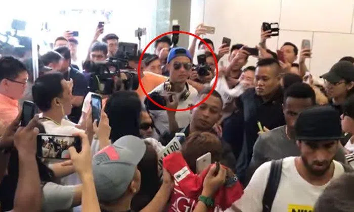 According to The Straits Times, the Real Madrid player was greeted by around 100 excited fans.