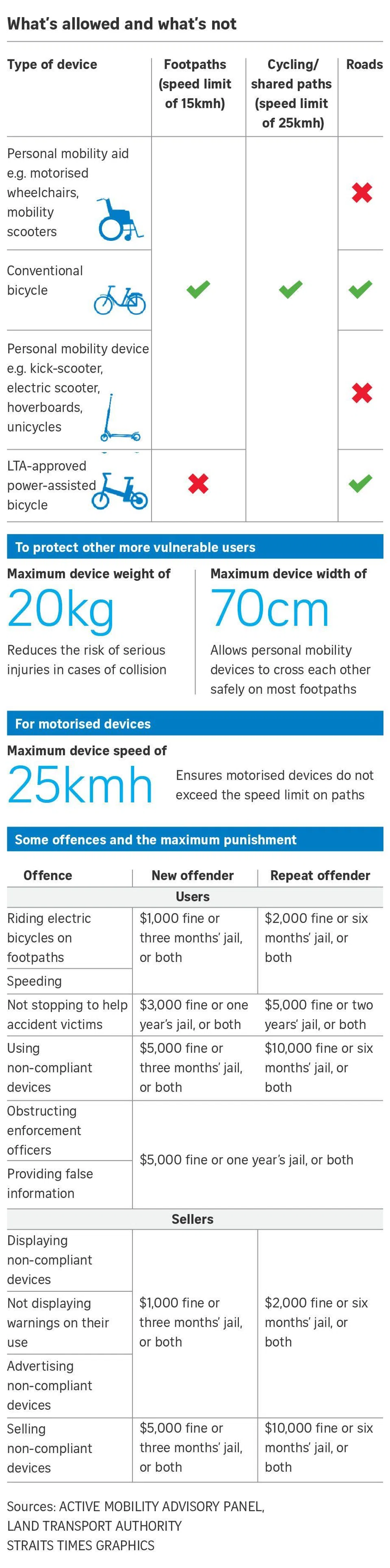 LTA said that the errant users committed offences such as “riding on-compliant devices on public paths and roads, using their PMDs or PABs on the wrong paths or roads, and speeding or riding recklessly on paths”.