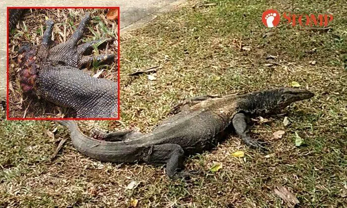 Stomper Ducimer came across an injured monitor lizard near Block 122 Punggol Walk yesterday (Jul 31) at around 11.30am.