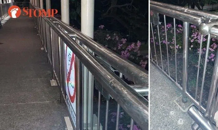 A BCA spokesman told Stomp: "The railings on the overhead bridge primarily serve as barriers to protect people from injury caused by falling from a height, and based on BCA's regulations, safety barriers must be at a minimum height of 1m."