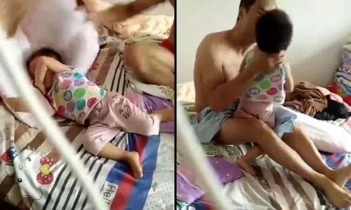 In a post published yesterday (May 16) by Facebook user KF Hui, a man wearing red underwear can be seen using a variety of painful methods in an attempt to make a child stop crying by force.