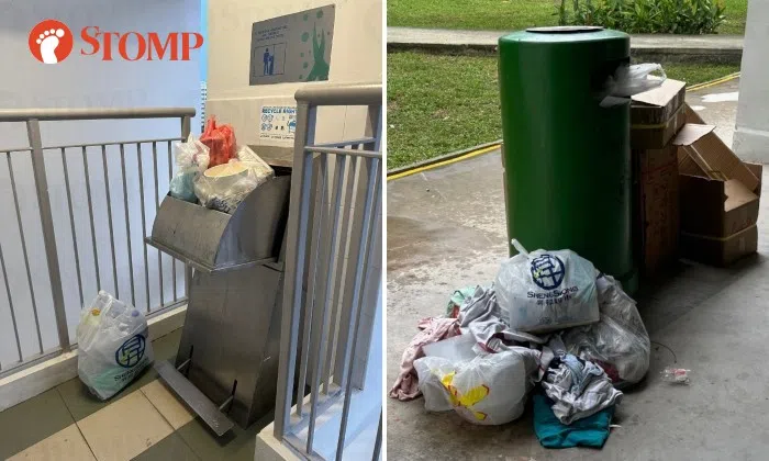 Stomper Paul, who lives in Aljunied, shared photos of a waste bin with piles of discarded items next to it.