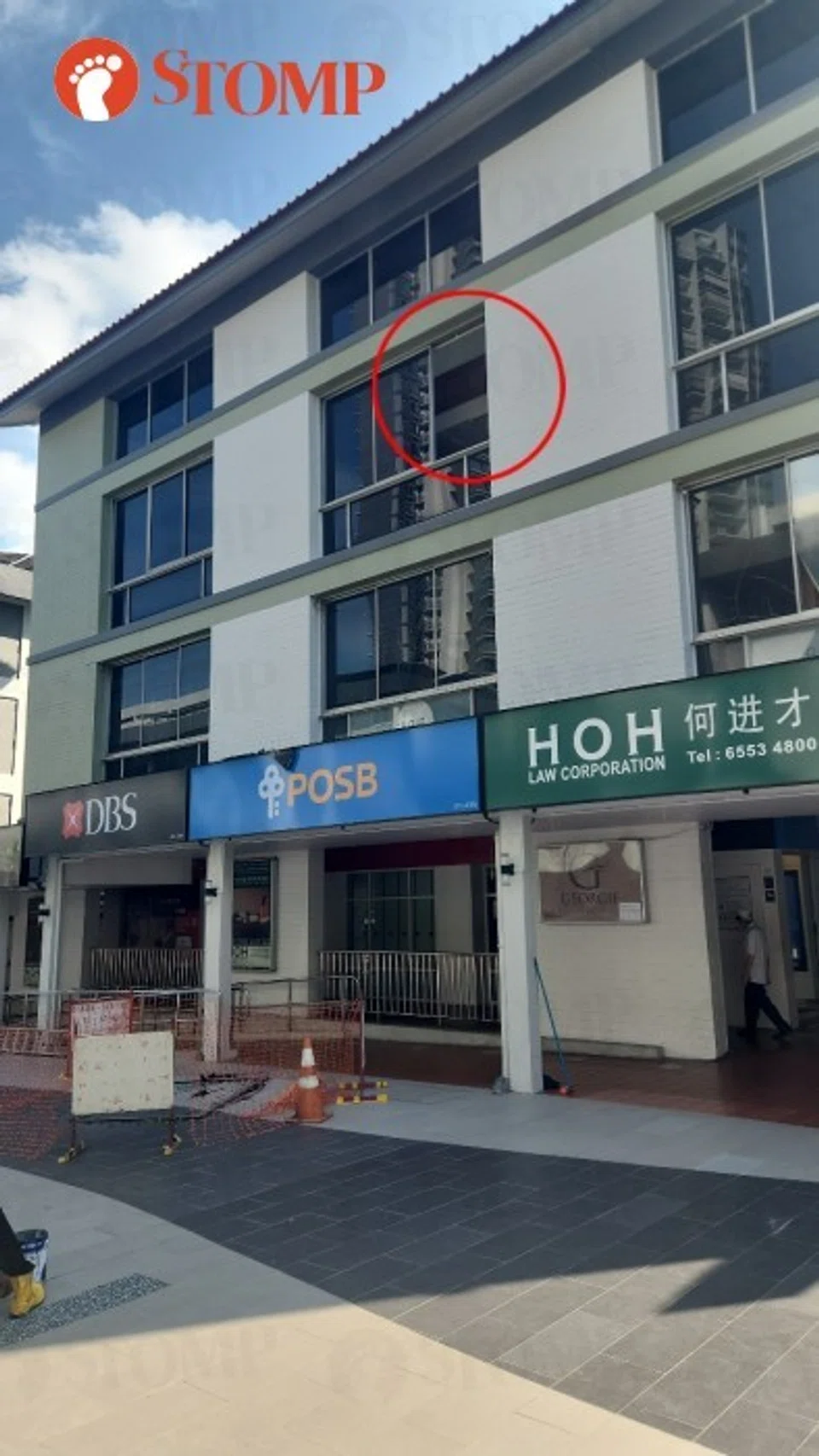 Sharing photos of the window frame and shattered glass on the ground as well as where it fell from, Stomper Bryan said he saw the fallen window at around 4pm.