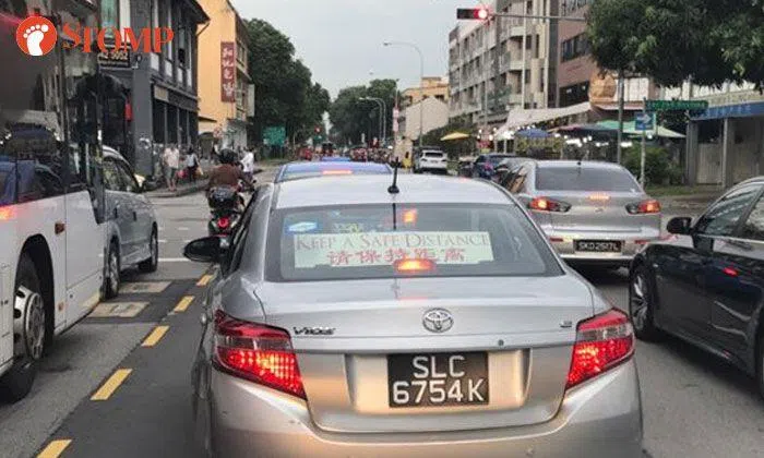 While in the car with his friend at a junction in Geylang, Stomper Sheng spotted a sign on the rear windscreen of a car.