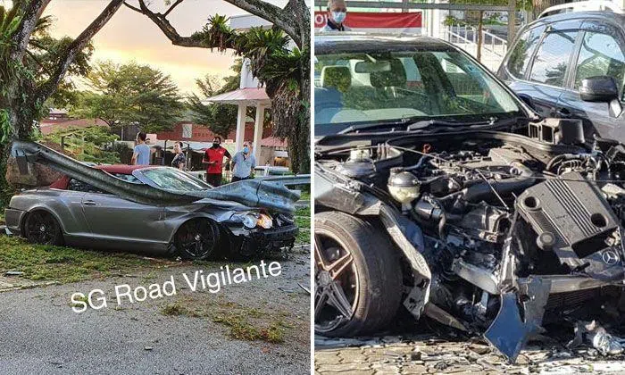 From the photos, the Bentley appears to have crashed into a lamp post as well.