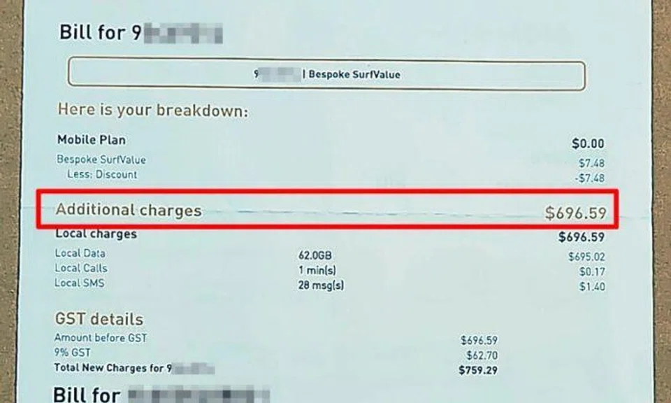 In her January bill this year, Ms Zheng's mother received a bill showing that the discarded SIM card had used up 62GB worth of data, incurring a bill of $695.