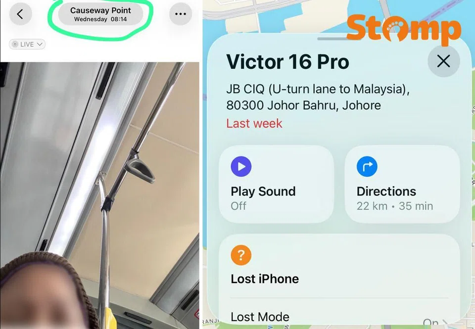 A man who lost his iPhone 16 Pro in Woodlands later traced it to Sembawang and then Johor, Malaysia.